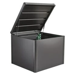 El armario para alacenamiento HighBoard de Biohort es un verdadero todoterreno gracias a sus dos puertas con bisagras y a la apertura de la tapa. El tablero se puede utilizar, por ejemplo, para almacenar cojines, utensilios de jardín o contenedores de basura. El diseño elegante fue creado por diseñadores industriales.