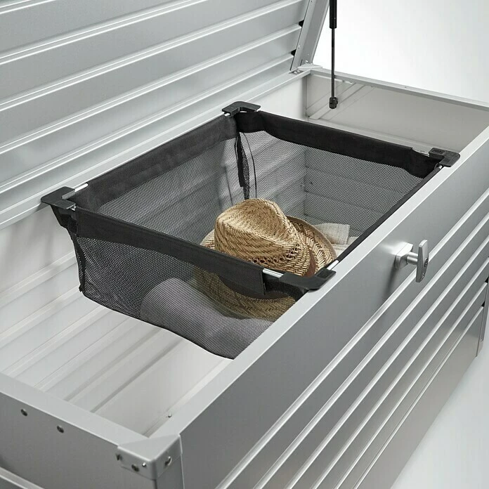 La cesta colgante de Biohort de trenzado de poliéster negro ofrece espacio de almacenamiento adicional para piezas pequeñas y puede soportar una carga máxima de 10 kg. Para fijar la bolsa, simplemente colóquela en el marco de la caja de almacenamiento Biohort. El modelo es adecuado para los arcones de ocio en los tamaños 100, 160 y 180.