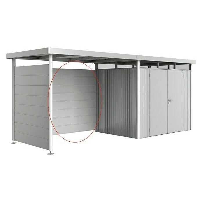 El panel trasero H2 – H5 de Biohort se adapta perfectamente a los techos laterales H2 – H5 y ofrece una protección adicional contra la luz solar en verano y contra la lluvia y el viento en los días más frescos. Fabricado en chapa de acero galvanizado en caliente con un grosor de pared de 5 cm, es especialmente duradero. La pared lateral está disponible en un color a juego con el color de la casa y se puede reequipar en pocos pasos gracias al sistema inteligente de tornillos enchufables.