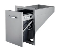 El cajón extraible para basura está fabricado con el mismo acabado que las barbacoas Sunstone y con el tirador de acero pulido. Incorpora unas guias super robustas para que el abrir y cerrar del cajón sea cosa de niños. Incluye un cubo de basura de plástico muy resistente, sin duda es el accesorio perfecto para ayudarnos a mantener nuestra cocina exterior o isla con barbacoa siempre ordenada. El cajón una vez instalado queda completamente a ras, así que es perfecta para diferentes tipos de superfices como piedra, cemento, etc.