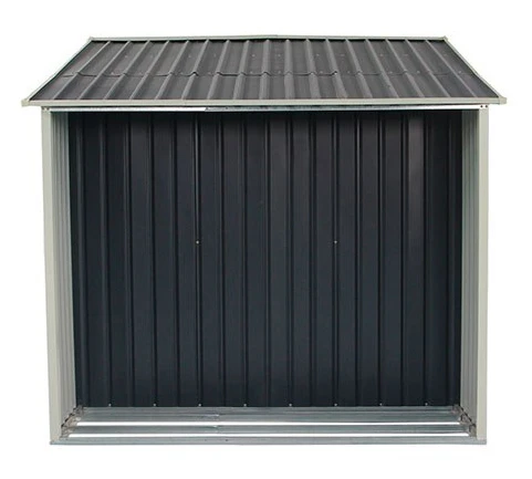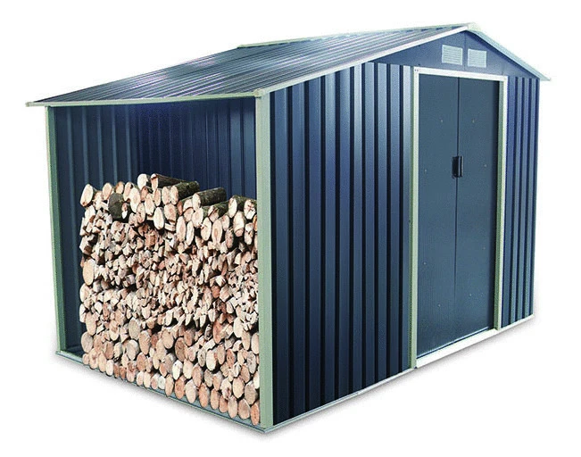 El modelo de caseta metálica Toronto está fabricado en Acero Galvanizado y pre-tinte en caliente. Cuenta con paneles laterales nervados, puerta corredera doble, tejado a dos aguas, y la gran ventaja de incorporar un anexo de almacenaje exterior y protección.