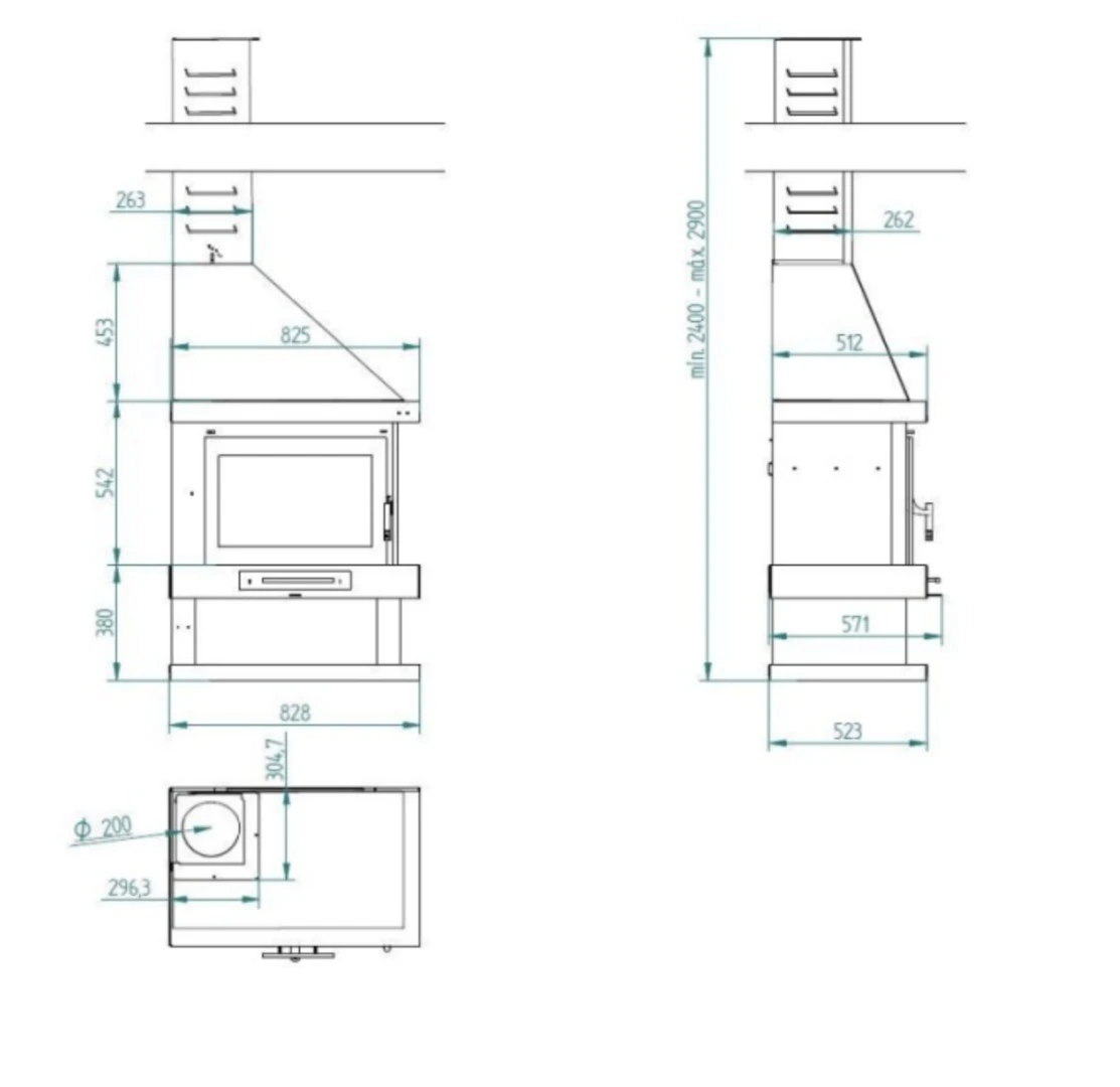 – Boca entrada de leña: 54.5 x 29.5 x 35 cm