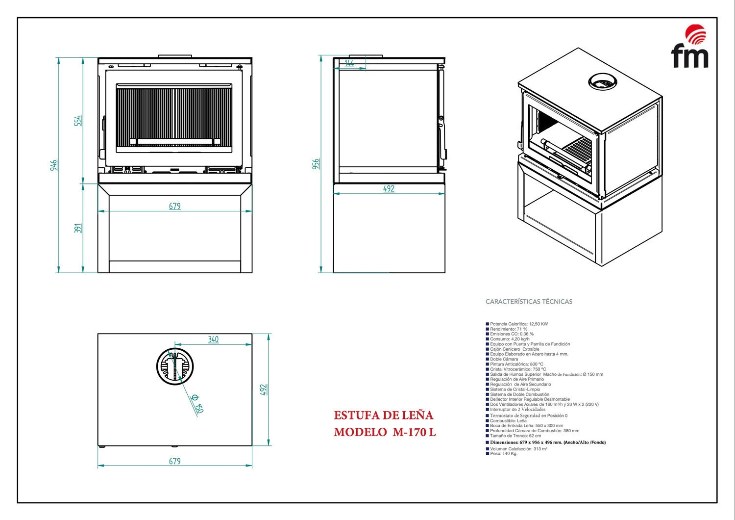 – Boca de entrada leña: 550 x 300 x 380 mm.