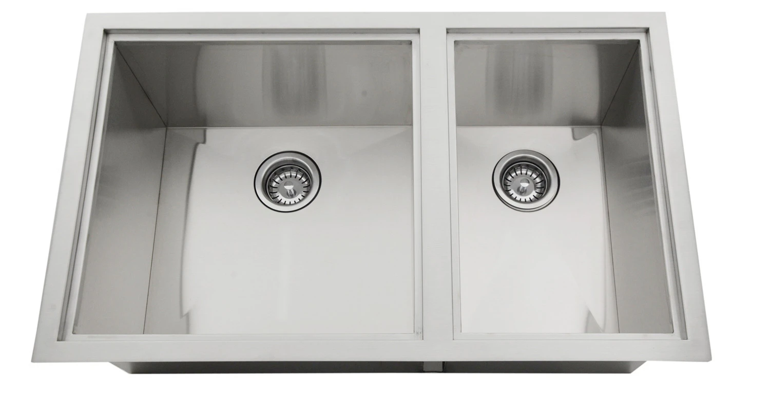 Fregadero Profundo Doble de Acero Inoxidable con 2 tapas para montaje bajo o sobre encimera.