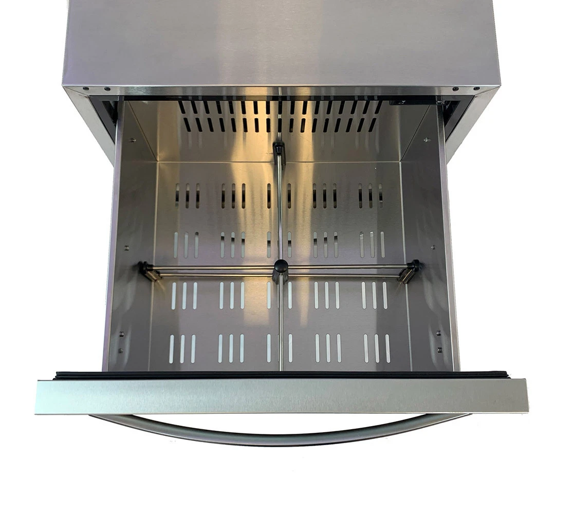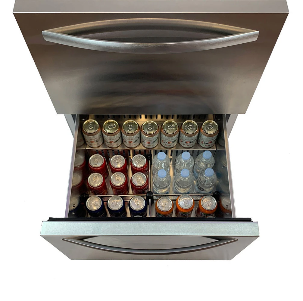 Gestionar el espacio en su cocina de interior o de exterior nunca ha sido tan fácil. El cajón de refrigeración Sunstone D150, con su generosa capacidad de 150 litros y el diseño de doble cajón, ofrece una solución elegante y práctica. Ofrece mucho espacio de almacenamiento adicional para mantener sus bebidas frías, alimentos frescos y llenos de sabor. Los cajones refrigerados le brinda un acceso rápido y fácil a sus bebidas y alimentos. Los cajones se deslizan suavemente gracias al sistema de cierre suave, cerrándose silenciosa y suavemente con solo un ligero toque.