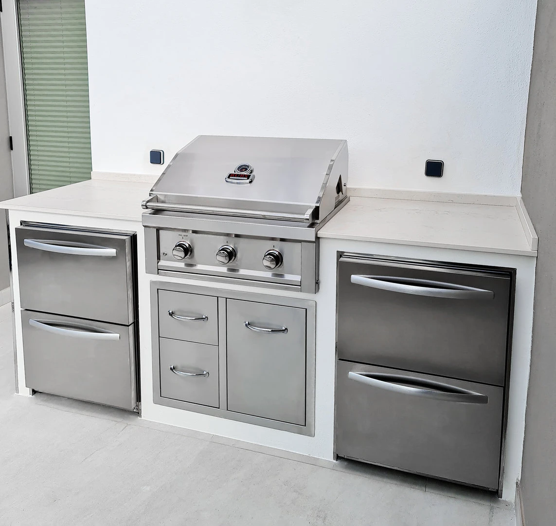 Importado de EE.UU, la firma Sunstone son barbacoas y componentes de primerísima calidad, líderes en el mercado Americano. Disponen de una amplia gama de accesorios, como quemadores laterales, cajones, centro de bebidas, puertas de armario, etc. Con todo ello podrá instalarse una cocina exterior o una isla plenamente funcional.