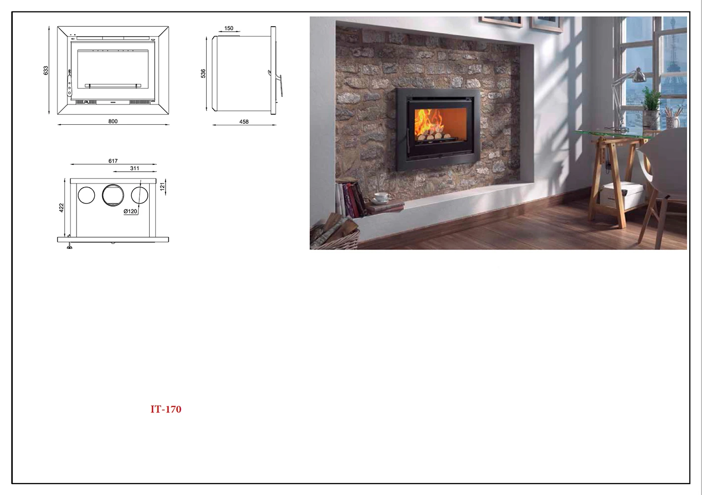 Magnífico insertable de leña, ideal para cualquier tipo de vivienda. Con una baja emisión de CO2 y un rendimiento superior al 70%, conseguimos un producto de alta calidad.
