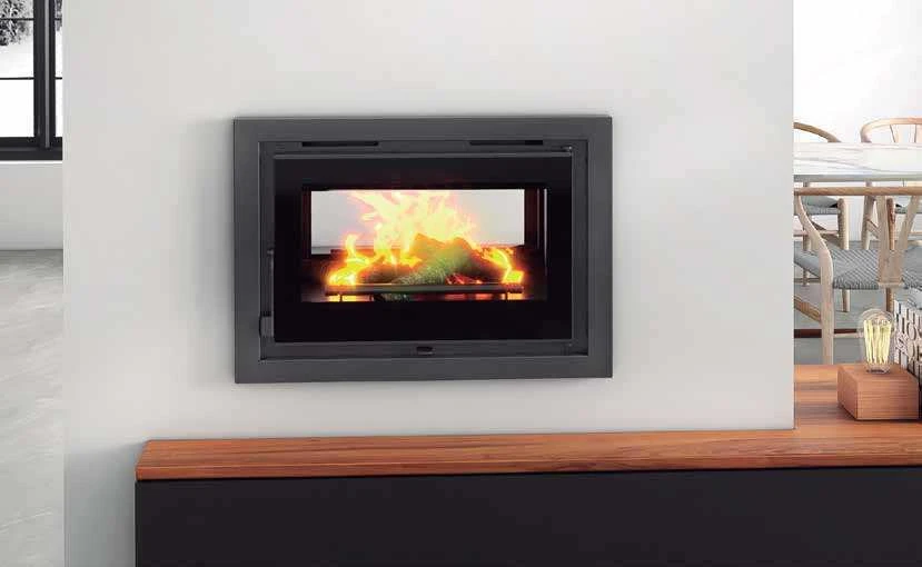 Magnífico insertable de leña, ideal para cualquier tipo de vivienda. Con una baja emisión de CO2 y un rendimiento superior al 70%, conseguimos un producto de alta calidad. Disponible también para el lado derecho.