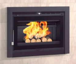 Estufa de altísima calidad y triple combustión. Con el interior en fundición y el cristal serigrafiado.
