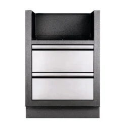 La cocina exterior perfecta cuenta con mucho espacio de almacenamiento y un acabado duradero que resistirá a los elementos. El módulo de tres cajones Oasis tiene los frontales de los cajones de Acero Inoxidable con una gran cantidad de almacenamiento para sus accesorios Napoleon y especias para asar.