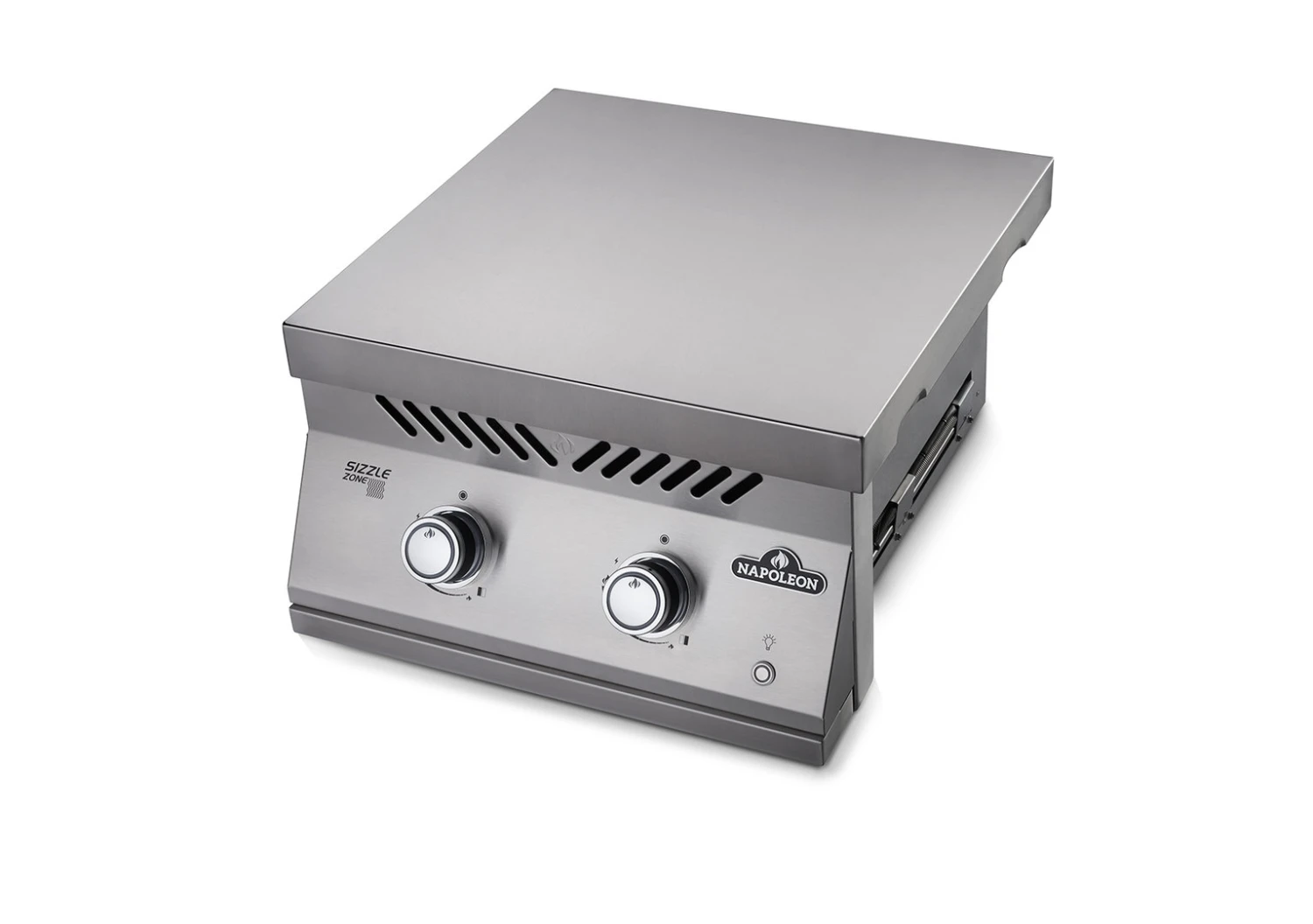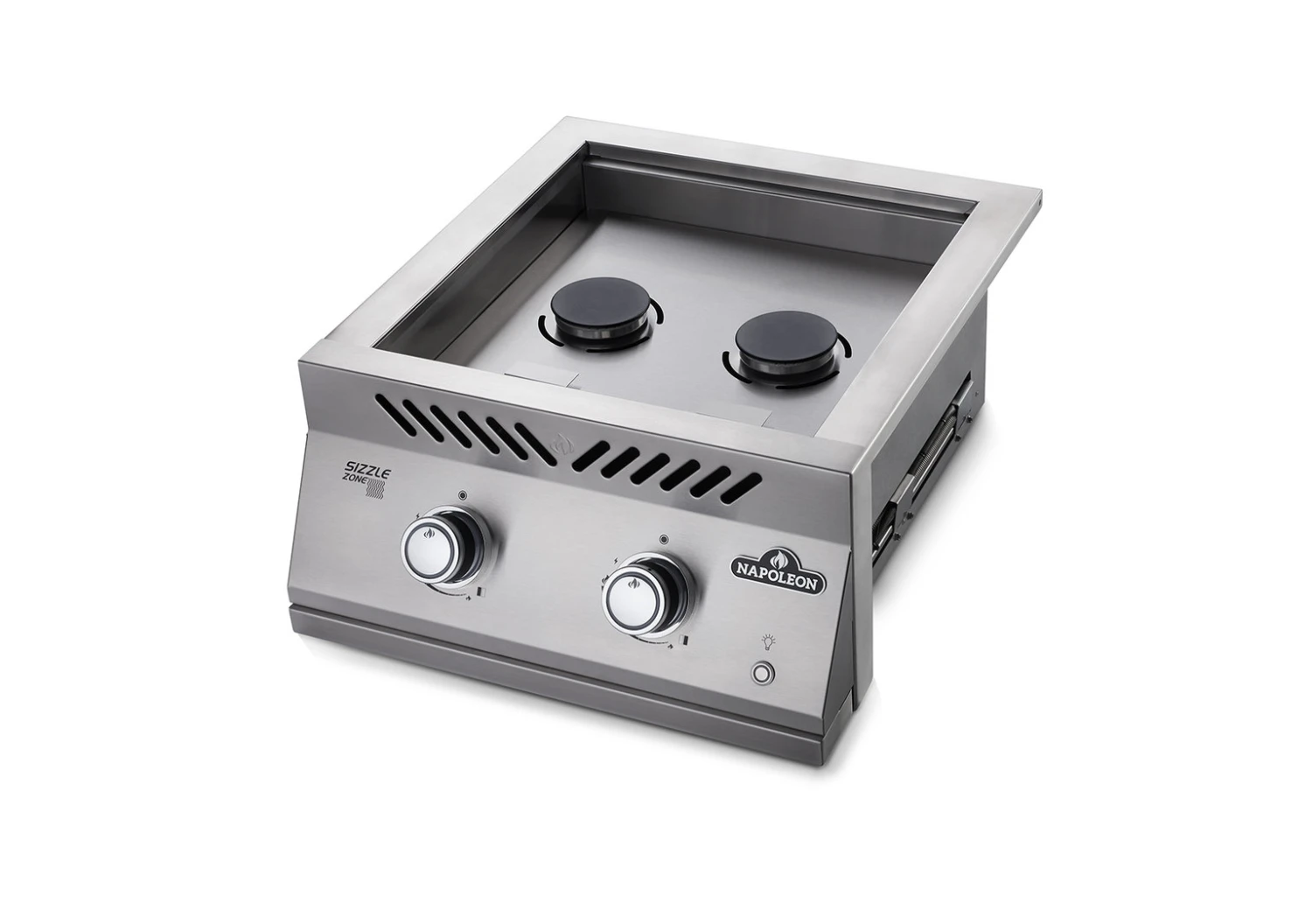 Elabore guarniciones y salsas mientras la parrilla principal está en uso con este quemador de estufa integrado dual de 45,7 cm que brinda mucho espacio adicional. Encienda estos quemadores de manera instantánea y con una mano, con el sistema de encendido Jetfire. Las grandes y ergonómicas perillas de control aportan ambiente y seguridad además de tener un glorioso color azul que cambia a rojo cuando se usan los quemadores.