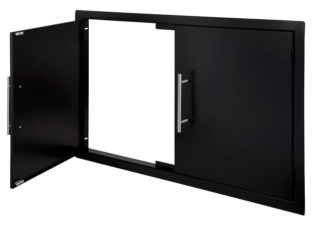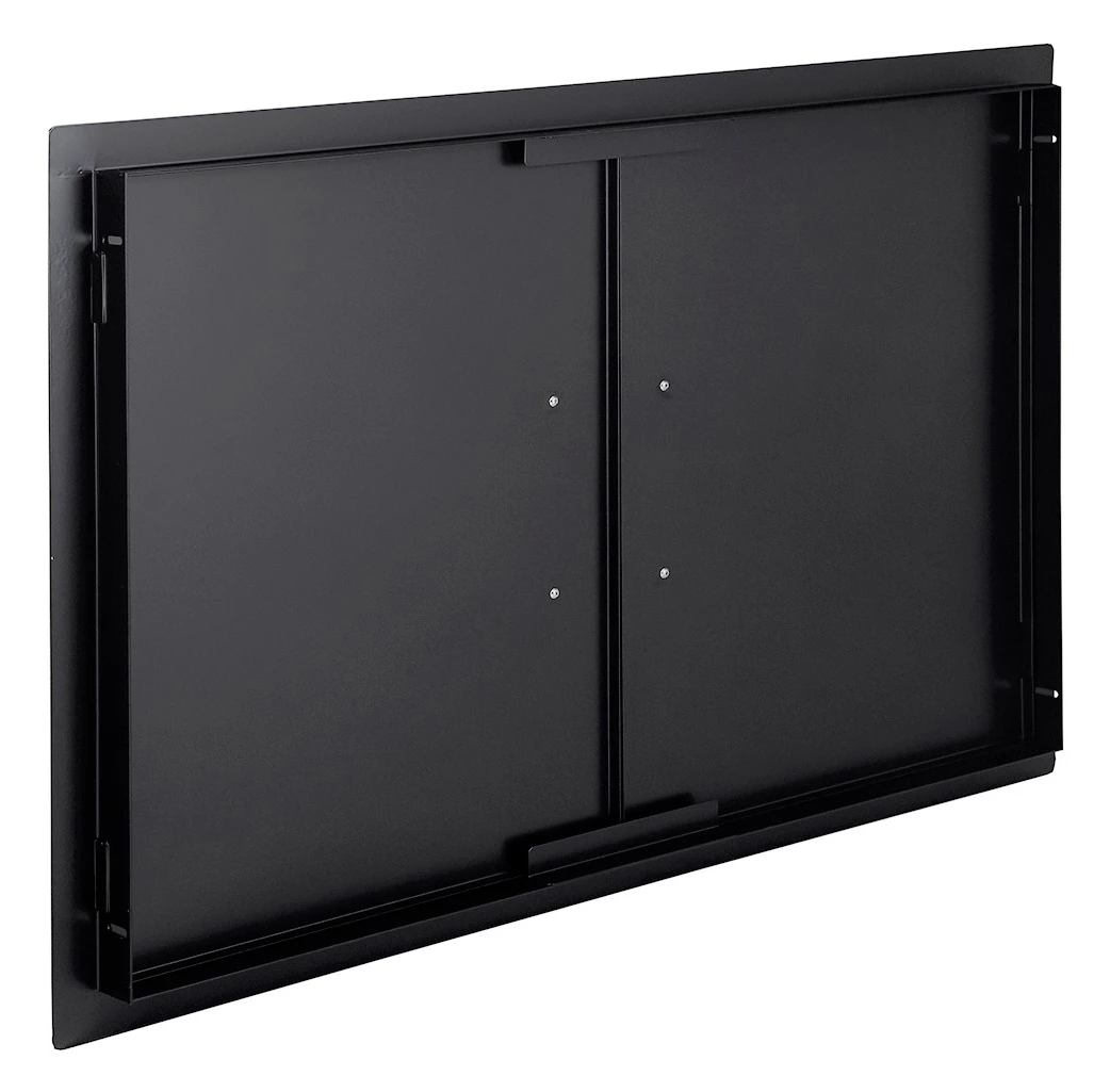 Las puertas dobles están fabricadas fabricadas en Acero Inoxidable esmaltado en negro y con los tiradores de acero pulido. Las puertas una vez instaldas quedan completamente a ras, así que es perfecta para diferentes tipos de superfices como piedra, cemento, etc. Además el marco de la puerta viene pretaladrado para una fácil instalación.