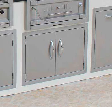 Las puertas dobles están fabricadas con el mismo acabado que las barbacoas Sunstone y con el tirador de acero pulido. Las puertas una vez instaldas quedan completamente a ras, así que es perfecta para diferentes tipos de superfices como piedra, cemento, etc. Además el marco de la puerta viene pretaladrado para una fácil instalación.