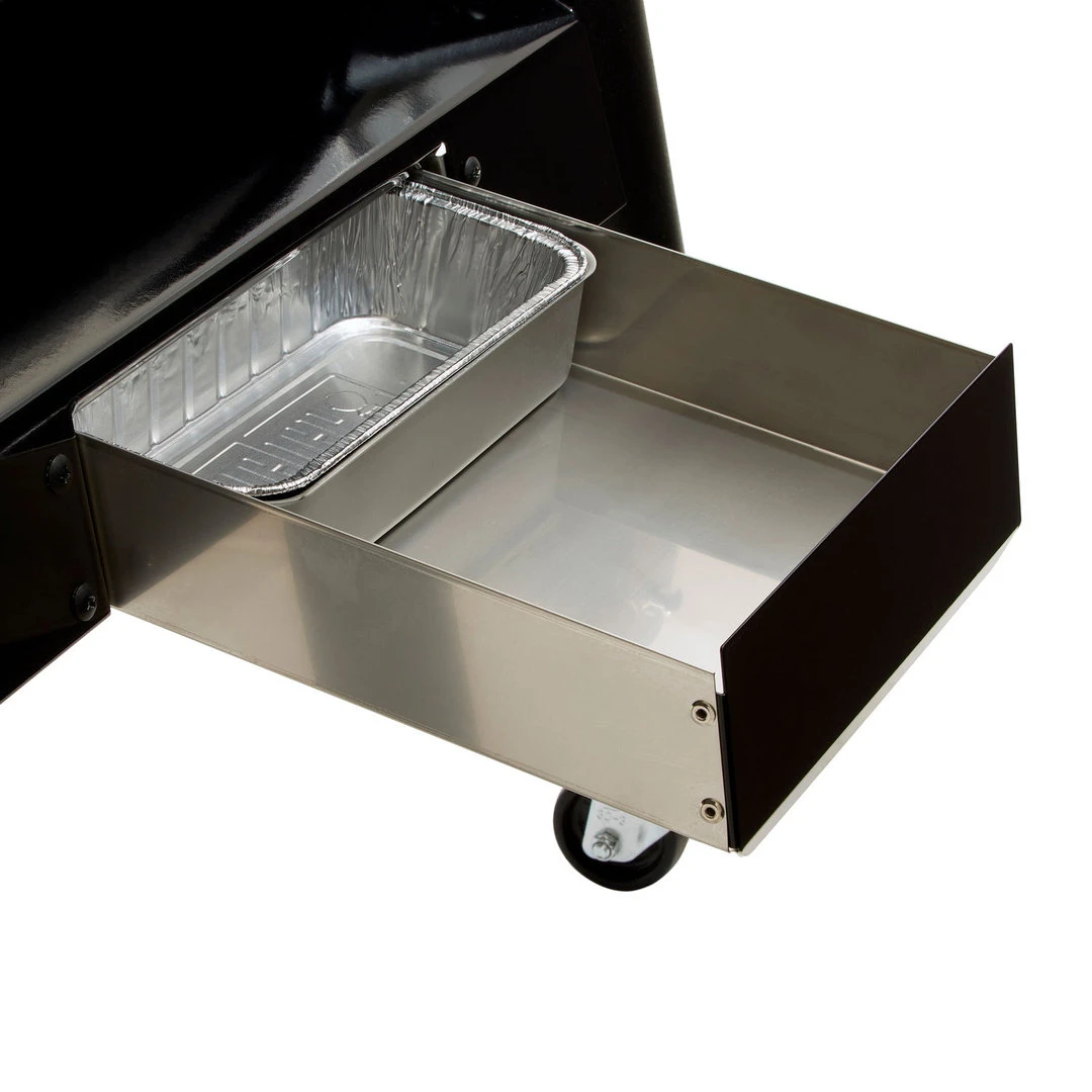 Con este innovador sistema, las cenizas y la grasa son canalizadas hasta un cajón extraíble incorporado para una limpieza fácil y rápida. Ello le evita tener que contemplar toda esa desagradable grasa en un cubo colgado del lateral de su nueva y flamante barbacoa de pellets. Este exclusivo sistema también evita que las cenizas vuelen hasta el compartimento de cocción y se depositen en los alimentos.