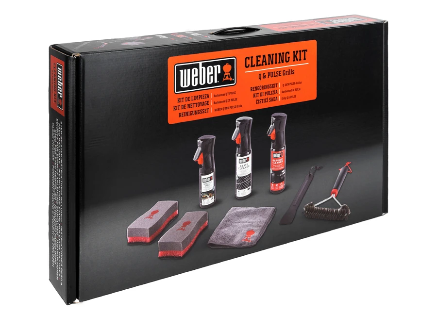 Kit de limpieza para barbacoas Weber Q y Pulse Con este nuevo formato de kit de limpieza completo en caja con asa, puedes cuidar tu barbacoa para conseguir que cocine de forma óptima.